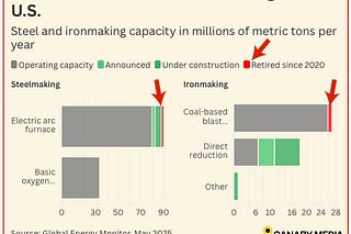 CanaryMedia: “Chart: US steelmaking is slowly getting cleaner.” We badly need technological progress, partly in terms of pollution reduction—as the…